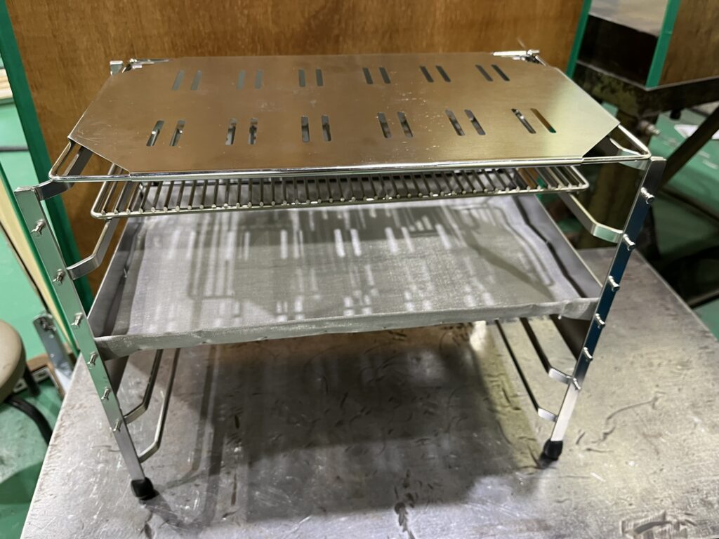 ↑BBQコンロの網、鉄板にずれ防止のちょぼを付けました!(2025.10)